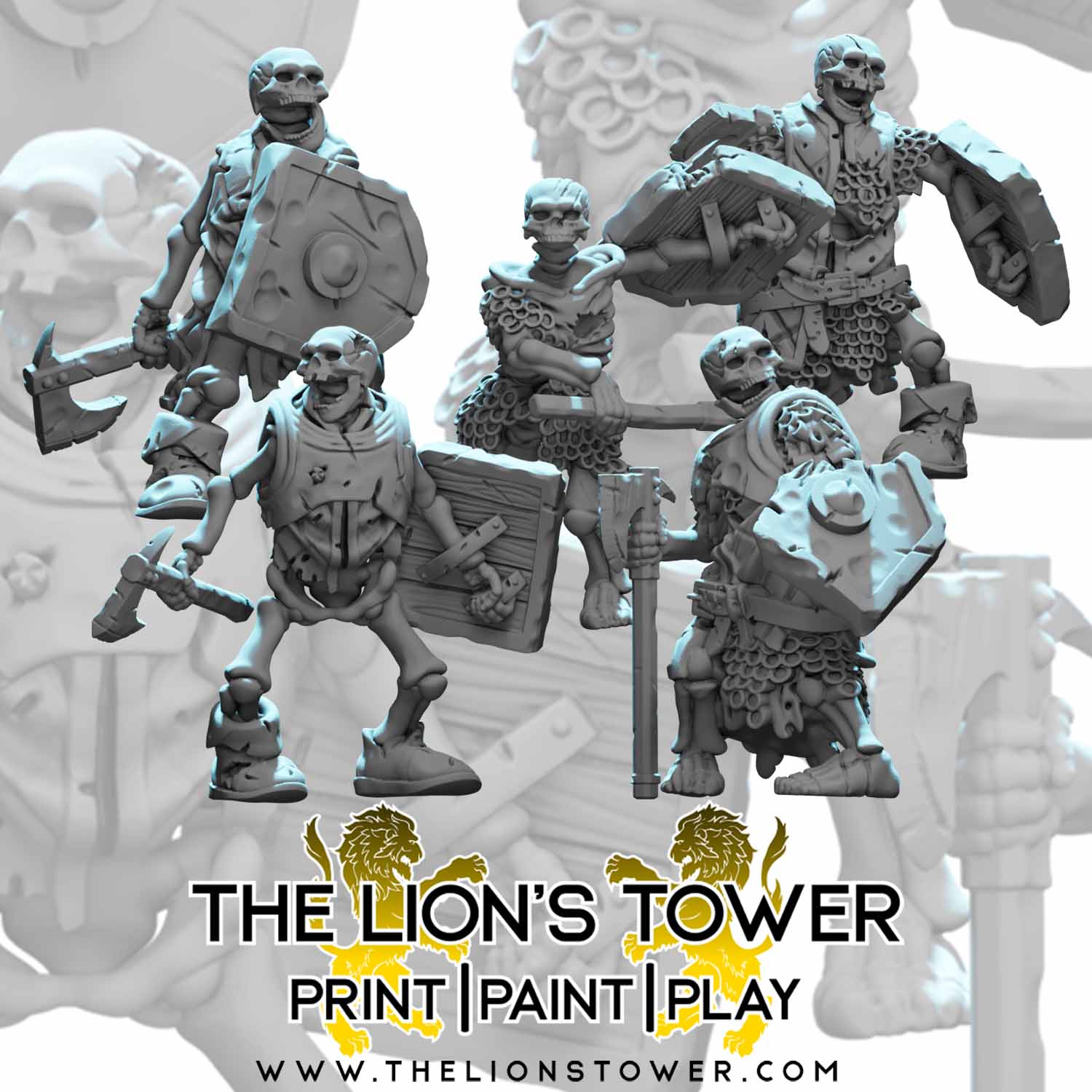 This product contains 5 skeletal dwarf miniatures sculpted in 32mm scale.
