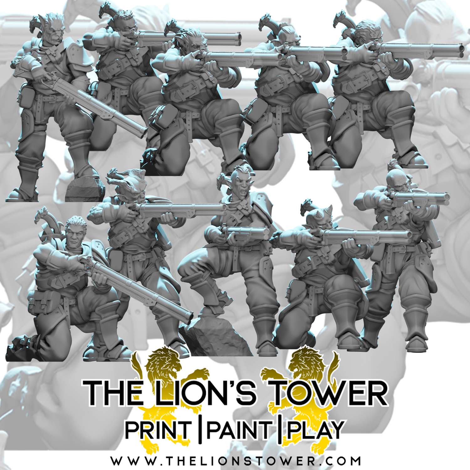 This product contains the Kingsguard Riflemen from The Kingdom of Talarius, a set of 10 high quality 32mm scale miniatures, ideally suited to harass your players in your RPGs, or bolster your forces for your favourite tabletop wargame.