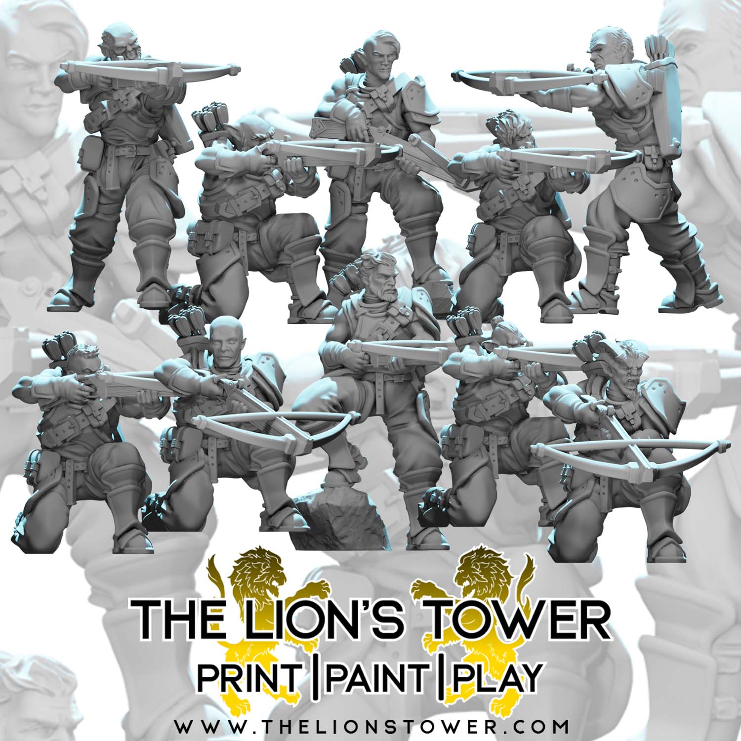 This product contains the Kingsguard Crossbowmen from The Kingdom of Talarius, a set of 10 high quality 32mm scale miniatures, ideally suited to harass your players in your RPGs, or bolster your forces for your favourite tabletop wargame.