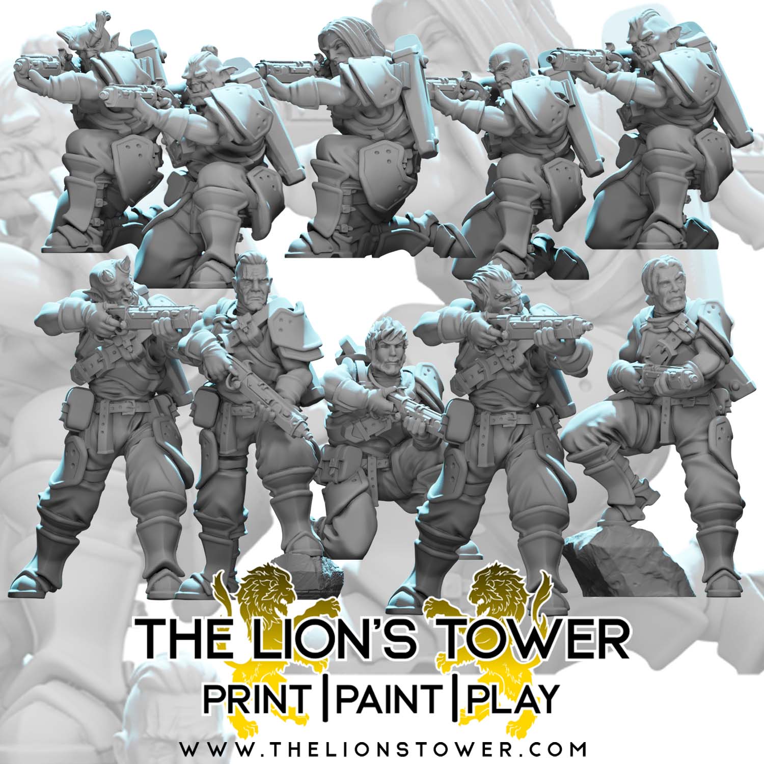 This product contains the Kingsguard Gunners from The Kingdom of Talarius, a set of 10 high quality 32mm scale miniatures.