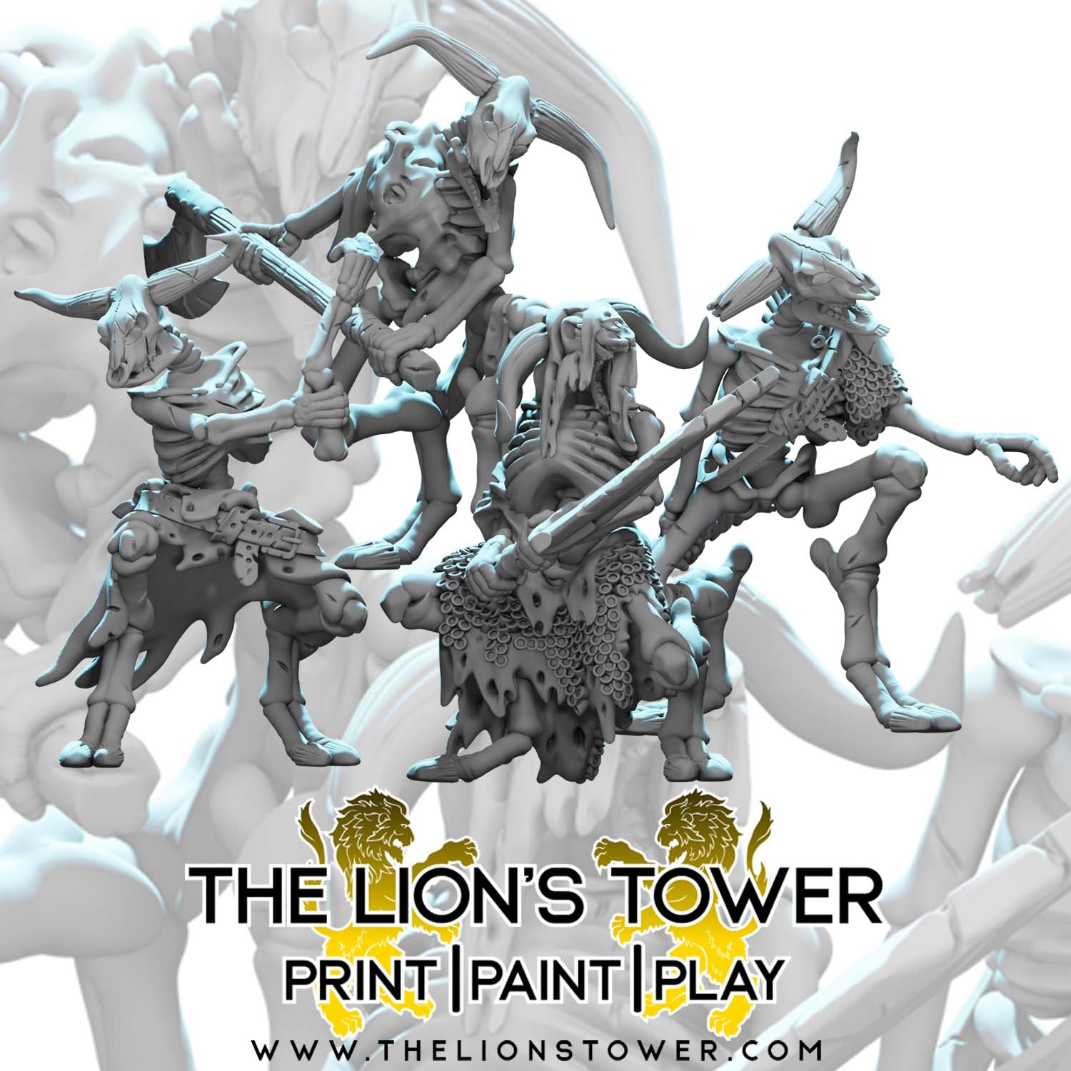 This product contains STL files for the set of Skeletal Minotaurs, consisting of 4 miniatures, as pictured. The Minotaurs are32mm scale, but because of their large size, they stand at approximately 45mm.