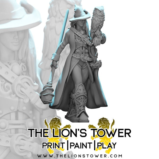 This product contains Anora Hawkshadow, a single miniature sculpted in 32mm scale.