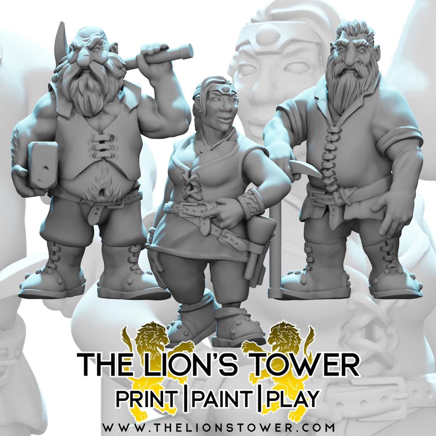 This product contains the Dwarf Mason Brunhild and her 2 labourers, Thrain and Varek, a set of 3 high quality 32mm scale miniatures.
