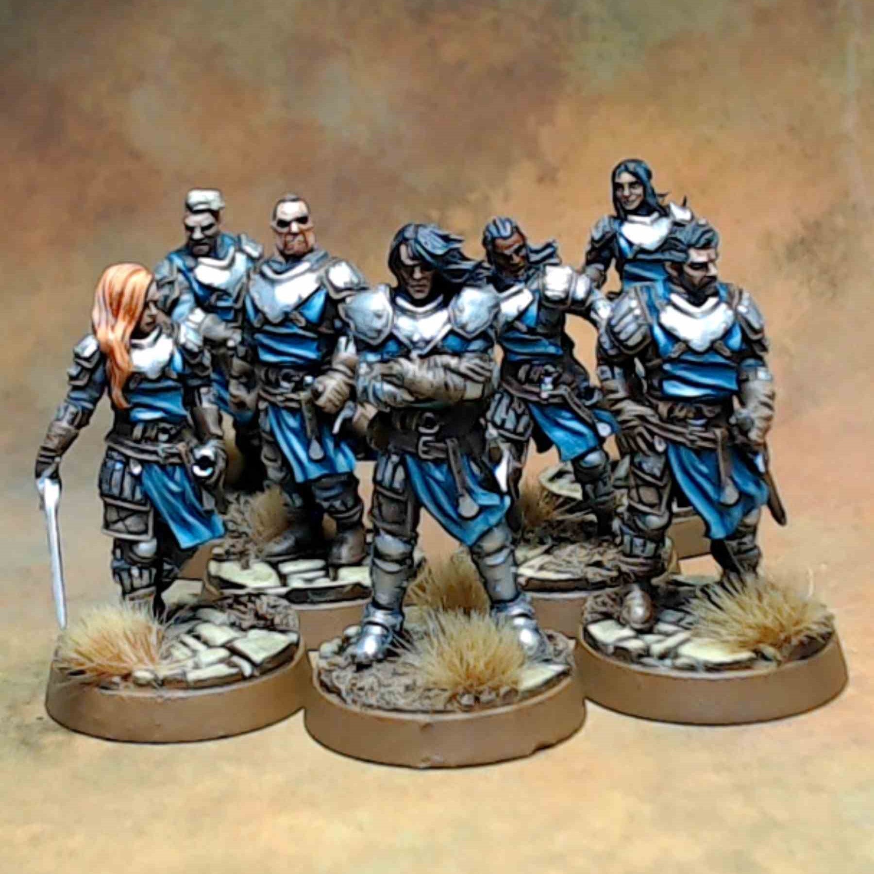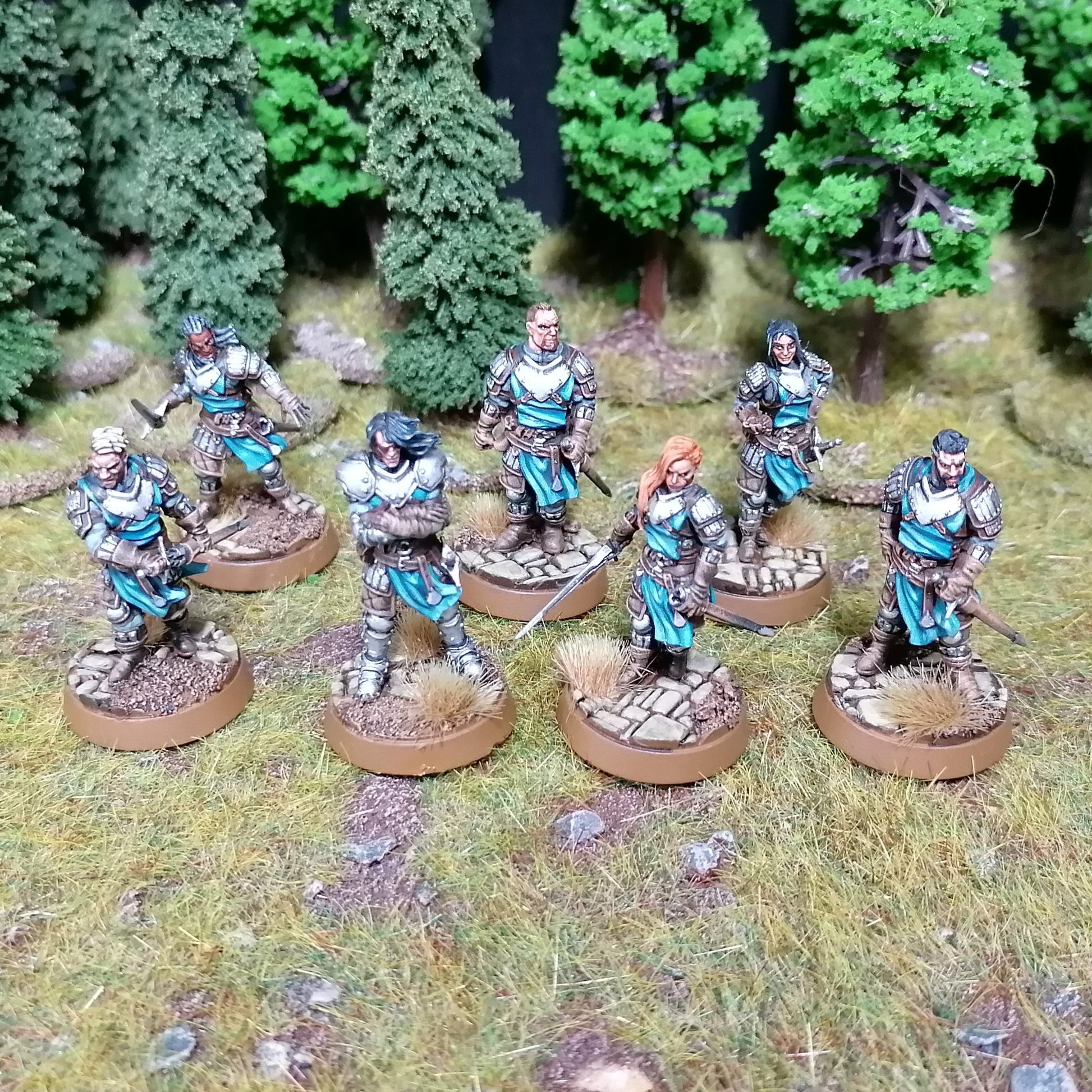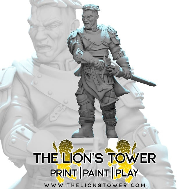 This product contains Captain Zed's Mercenary Company, a set of 7 high quality resin miniatures, sculpted to 32mm scale - Captain Zed, Falk, Izzo,  Minny, Nell, Oliver and Sal.
