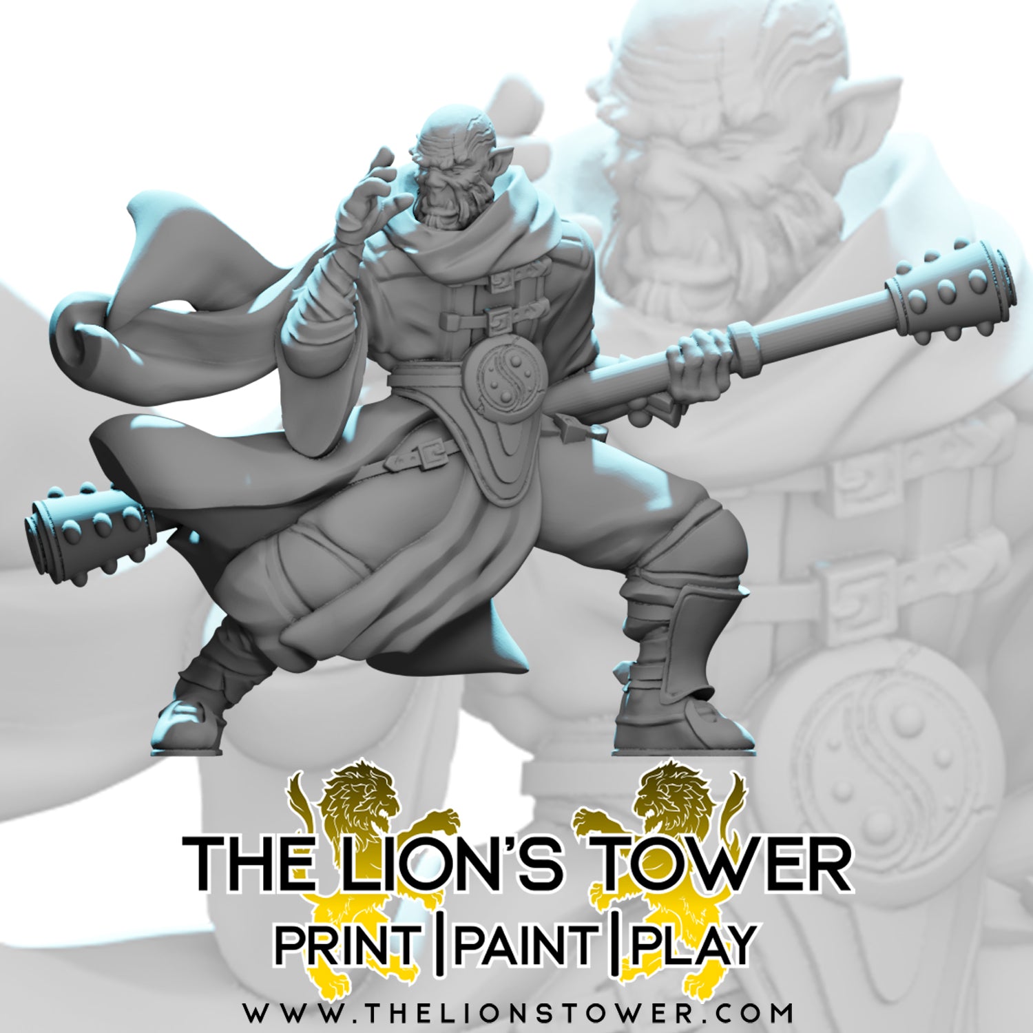 This product contains the Half Orc Male Monk, single miniature sculpted in 32mm scale.