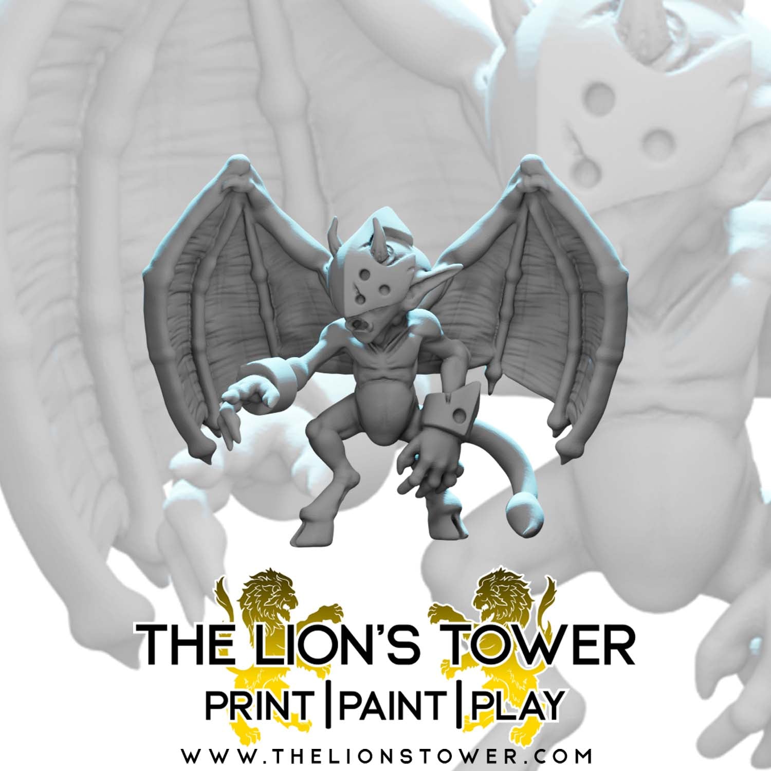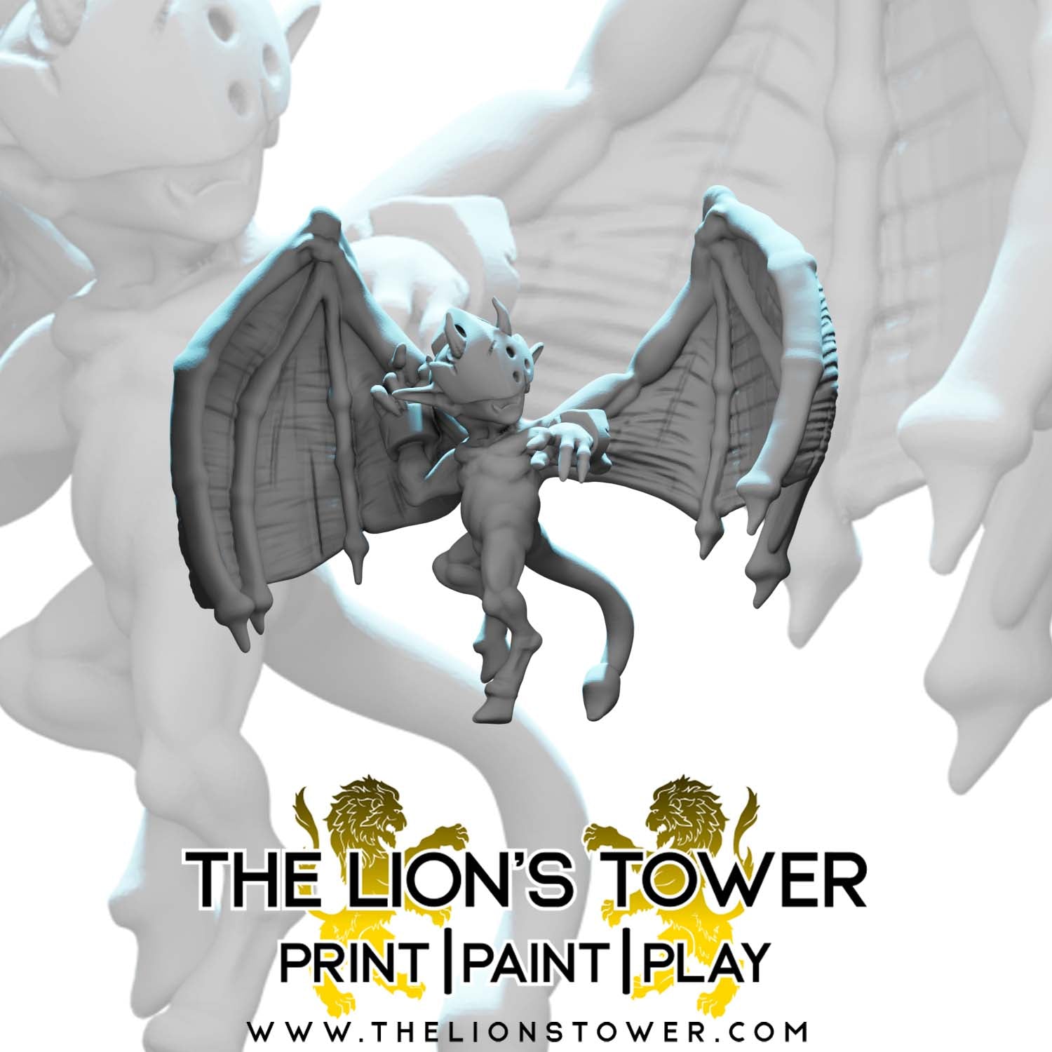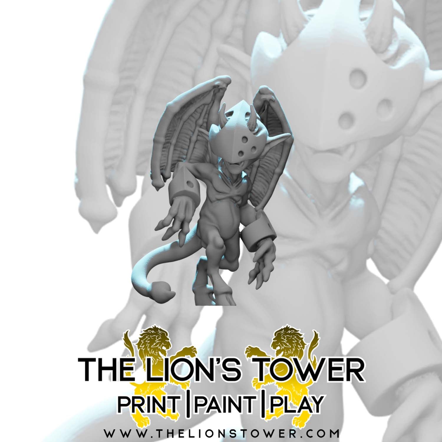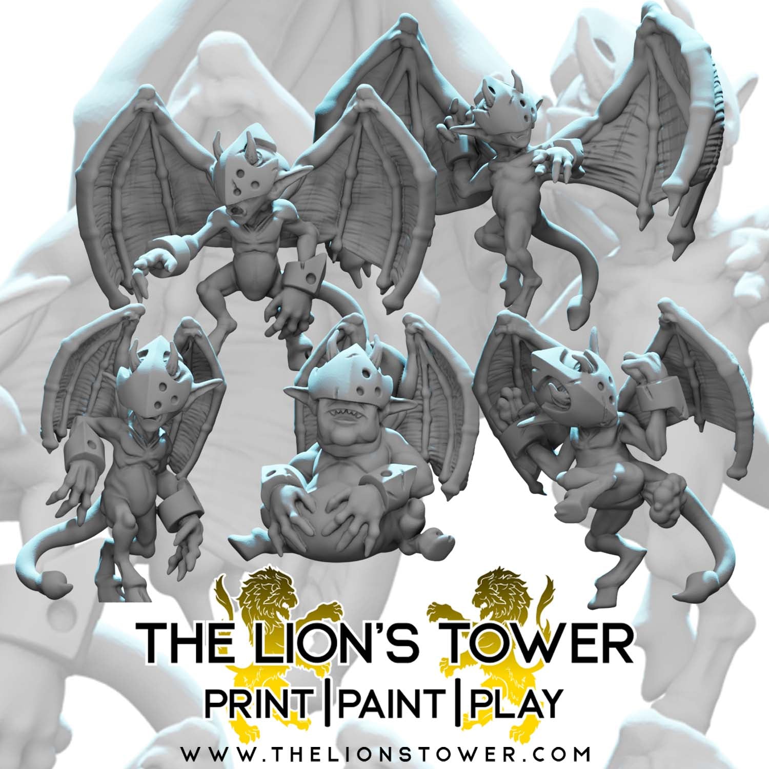 This product contains the Infernal Imps, a set of 5 high quality miniatures. The 5 Imps shown are very small (around 10-12mm tall). They are supplied with 15mm diameter bases.